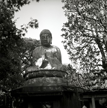 The best of the temples has this rather large Buddha statue in the grounds. Fuji ACROS 100 film.
