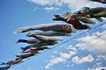 The word Koinobori literally means "carp streamers" and is an apt name for this very Japanese sight. Every year to celebrate Children's Day - one of the Golden Week holidays, huge carp streamers are strung across rivers to fly in the early spring winds. These carp can be up to 3 meters long and are very finely detialed and beautiful to see. We travelled some distance out of Tokyo to witness this. I had along my Sigma DP3 and my Hasselbald 500CM film camera. The film will take some time to come back from the developer, so I thought I should post some from the digital camera. Once again the Sigma camera was magical.