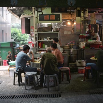 A very famous noodle Dai Pai Dong on Hollywood Road. Comes with low tech climate control. Canon EOS 1Ds Mark III